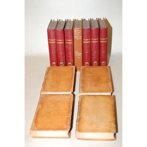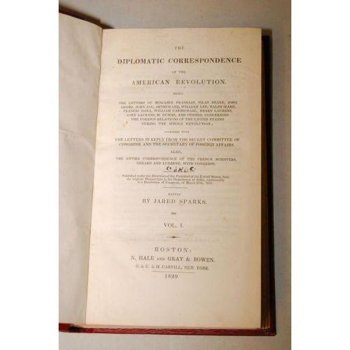 Sparks, Jared [edited by]. The Diplomatic Correspondence of the American Revolution. Boston: N. Hale and Gray & Bowen, 8vo - over 7¾" - 9¾" tall. Hard Cover. Ex-Library. Good Condition. This 12 Volume set lacks volume IV. 1829-1830. 6 volumes in a library binding, other in leather bindings with covers detached. Occasional foxing. Sold as is.