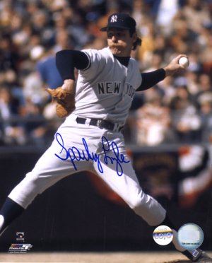 In 1972, Sparky Lyle became the Yankees' bullpen ace, establishing himself as one of the best relief pitchers of the 1970s. He played a major role in the Yankees capturing three straight pennants from 1976 to 1978 and winning the World Series in the last two of those years.[9] In 1972, he saved 35 games, an American League record at the time, and a major league record for left-handers; Ron Perranoski had set both marks in 1970, but John Hiller would surpass Lyle's total with 38 in 1973. In 1972, Lyle also became the first southpaw to collect 100 saves in the American League. He also finished 3rd in the 1972 MVP voting. Sparky Lyle has hand autographed this New York Yankees 8x10 Photo. Lojo Sports Hologram and Certificate of Authenticity from Athlon Sports.