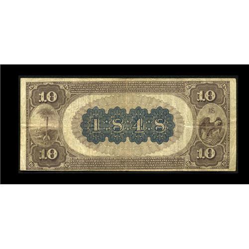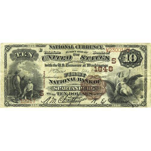 <B>Spartanburg, SC</B></I> - $10 1882 Brown Back Fr. 490 <B>The First NB</B></I> Ch. # (S)1848<BR>An appealing mid-grade Brown Back with printed signatures and lightly handled edges. <B>Fine-Very Fine.</B></I>