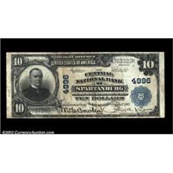 Spartanburg, SC - $10 1902 Plain Back Fr. 631 The Central NB Ch. # 4996Pleasing Very Fine example with strong signatures. Important notice: We expect to be auctioning lots at the rate of 200-250 per hour. Sometimes eBay Premier live bid software cannot keep up with that pace, so we strongly recommend that you place a realistic proxy bid now as insurance to avoid disappointment. Also please note that all Heritage/CAA lots purchased through eBay Premier carry a 20% Buyer's Premium. Please make sure you read the Terms and Conditions.