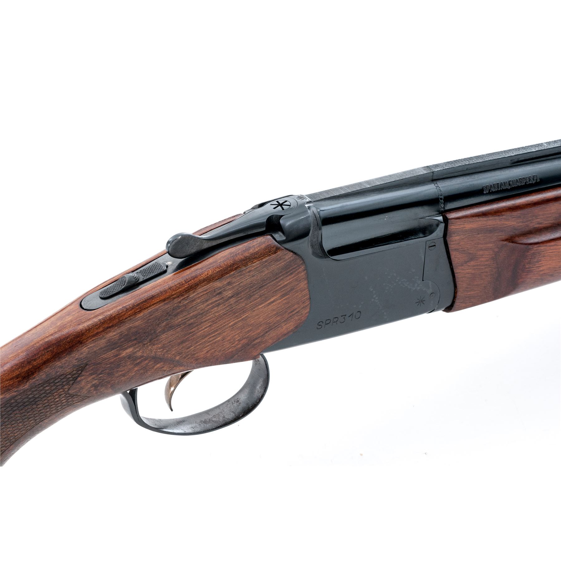 Sparton Model SPR310 Over/Under Shotgun, by Remington, #042770013R. 12 ga. 28-1/2'' (67cm) vent rib barrels have 3'' chambers and are choked Mod./Full. Simple boxlock action has single non-selective trigger, auto safety and auto ejectors. Semi-beavertail forend and pistol-grip buttstock are of oil-finished hardwood, with minimal checkering and original Spartan/Remington recoil pad. Made by Baikal in Russia approx. 2005. Condition is near excellent showing little use, with minor impressions to wood. Action is still quite tight, ejectors function correctly, and bores are bright. Est.: $300-$400. (Modern)