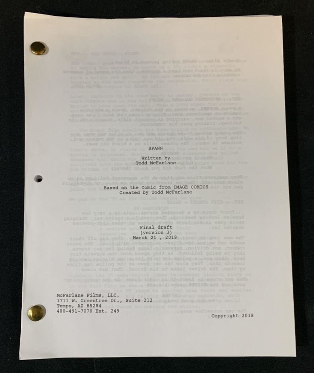 Original full script for the proposed new Spawn film, written by Todd McFarlane. This is Robert Kurtzman (special makeup effects) copy with annotations throughout.