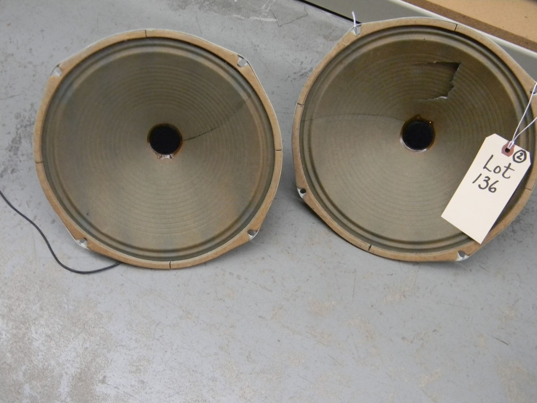 two 12" permanent magnet speakers; one great condition, other has tear in cone