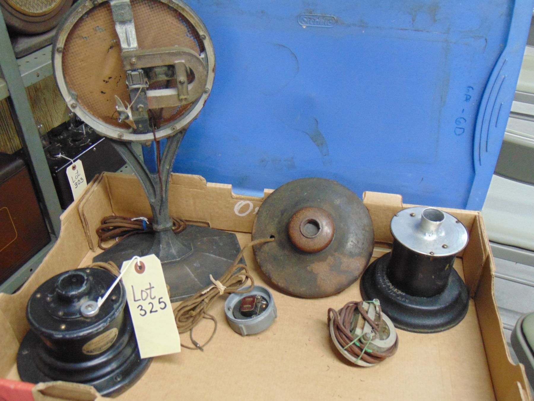 Speaker parts; includes Western Electric cone speaker frame, with driver; 5 other drivers and horn speaker bases