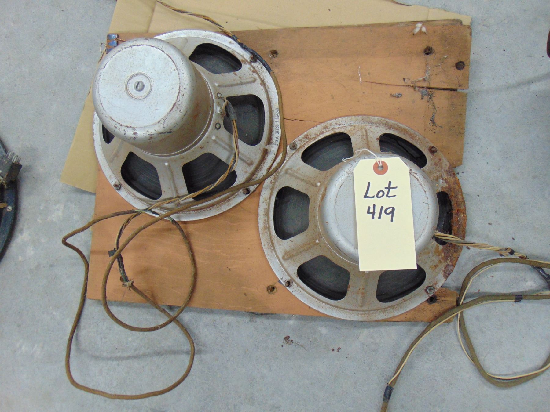 Two 12" electro magnetic speakers; one is good, one has some damage