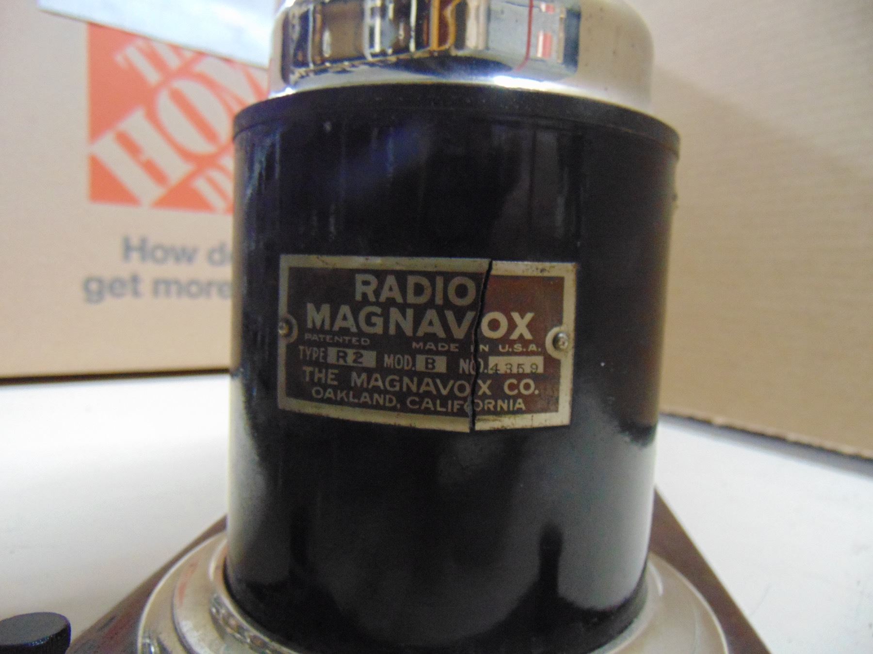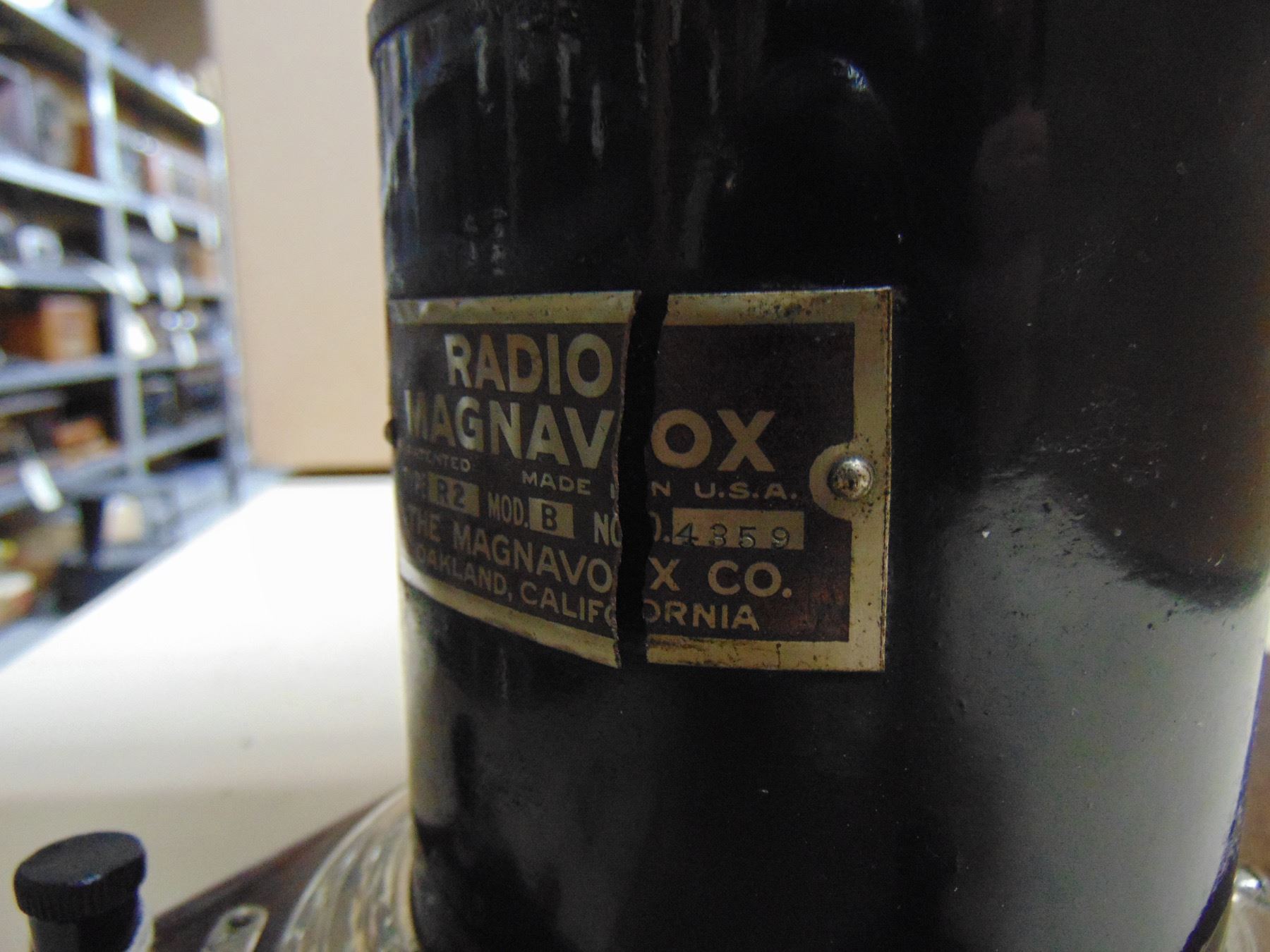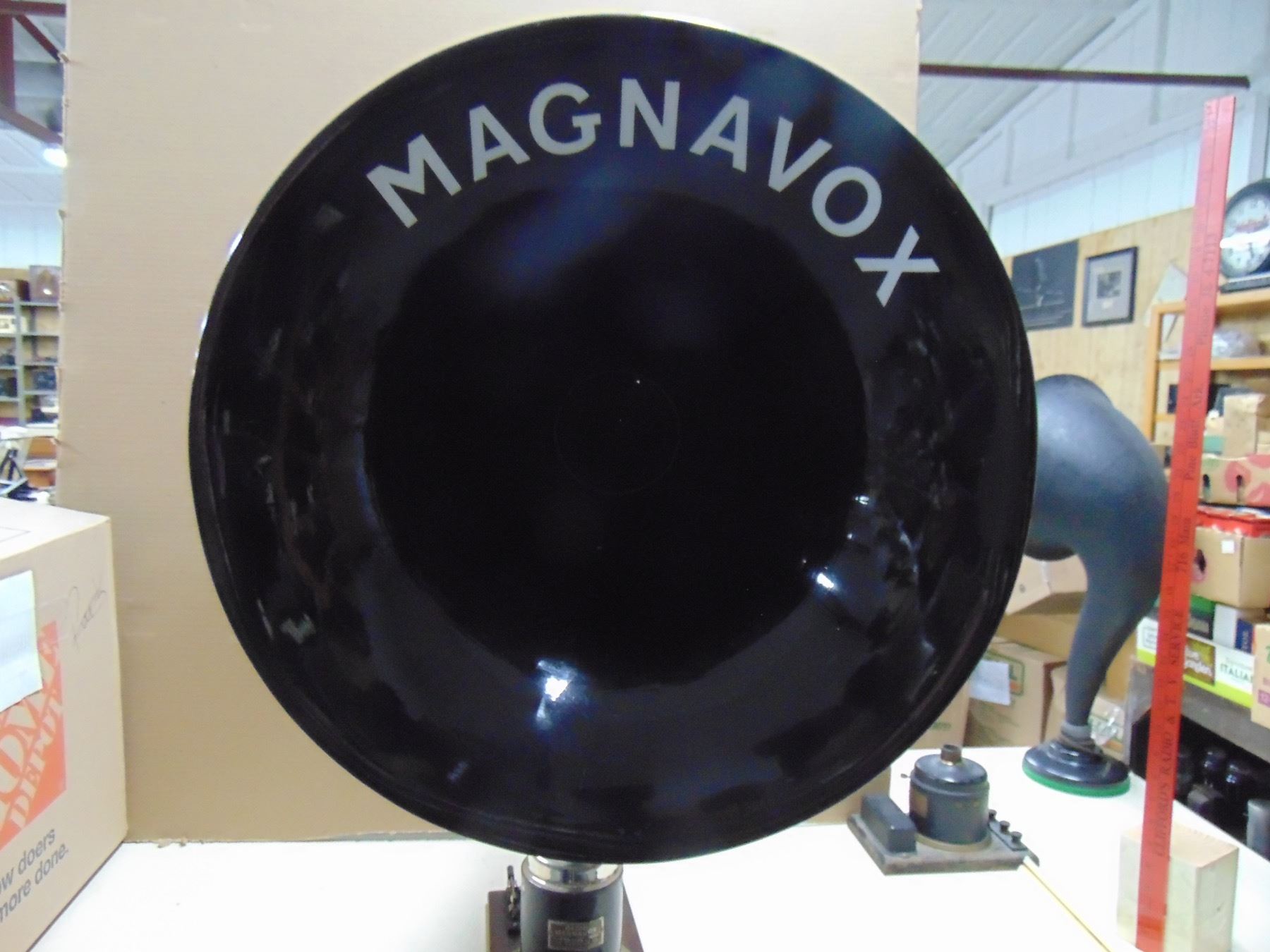 Magnavox horn; type R2, model B; approx 35" tall. approx 22" across; broken tag; Magnavox's largest horn speaker produced ( auditorium and PA usage); good driver; rare