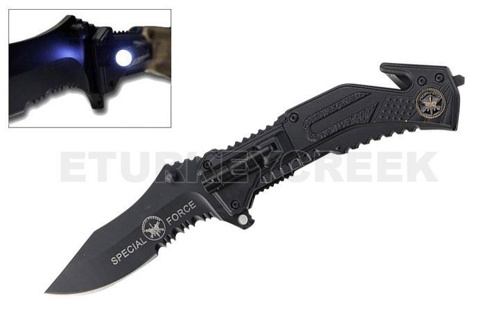 Special Force Rescue Folder Spring Assist Knife LED Light 4.5"