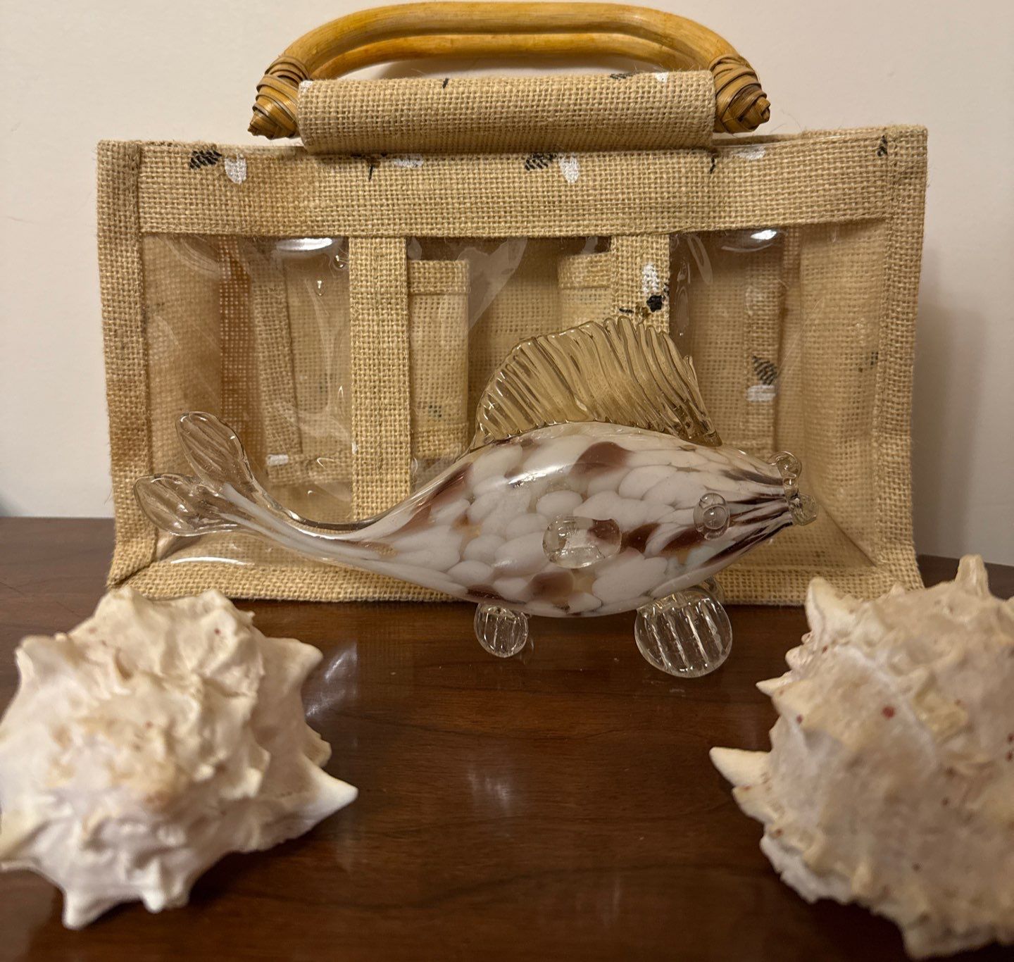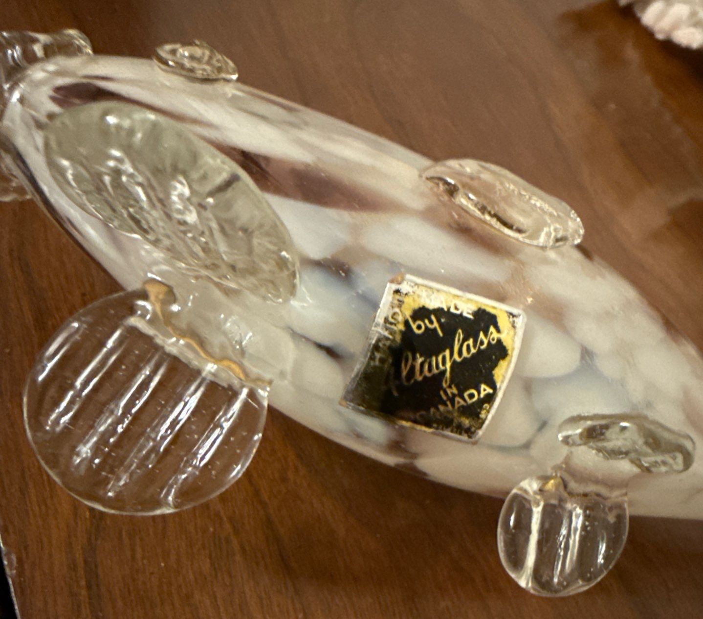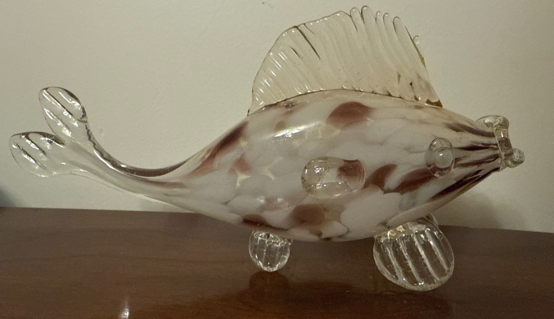 Special Hand Blown Fish Glass Statue w/ Seashells 3"tall