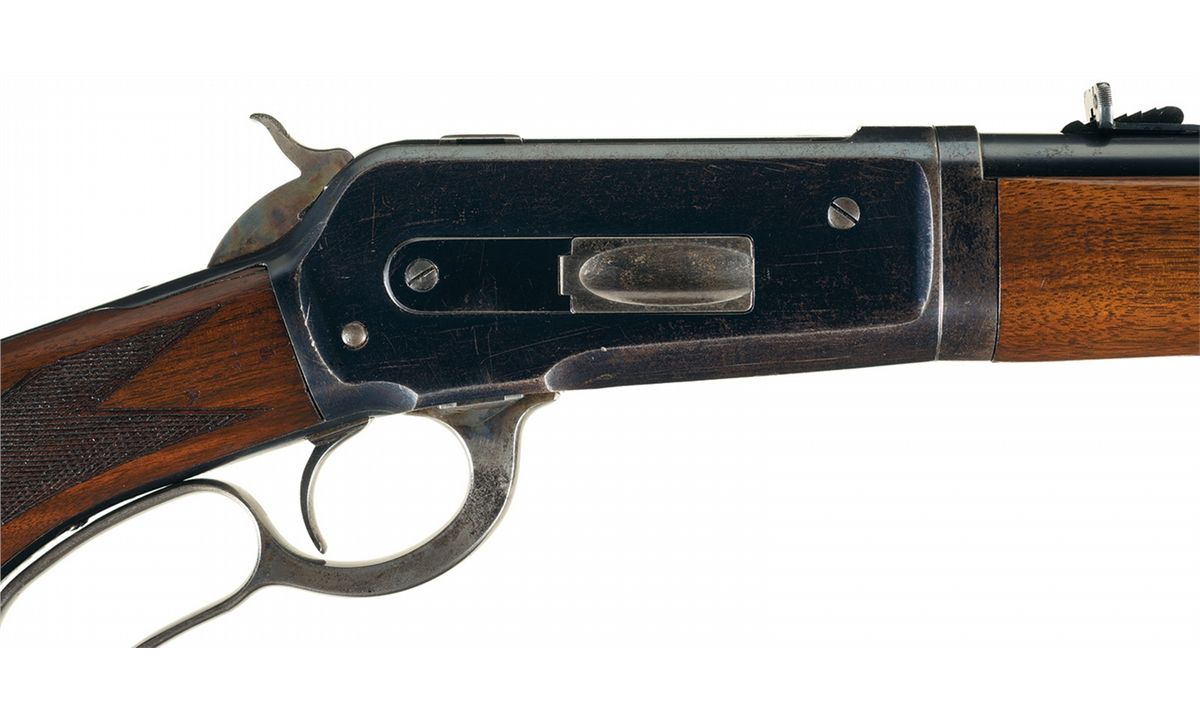 Very fine with 80% plus of the original blue finish with light blue loss on the underside of the receiver and take down mechanism with the cocking lever also having faded to a silvery patina with subdued case colors on the upper part of the lever. The stock and forend are both in very fine condition with 90% of the original factory varnish with some areas of light flaking and minor handling marks. The checkering is also in very fine condition with nice original checkering showing light wear across the tops of the checkering. Overall a very nice, special order Winchester Model 1886 lever action rifle.