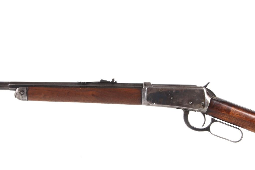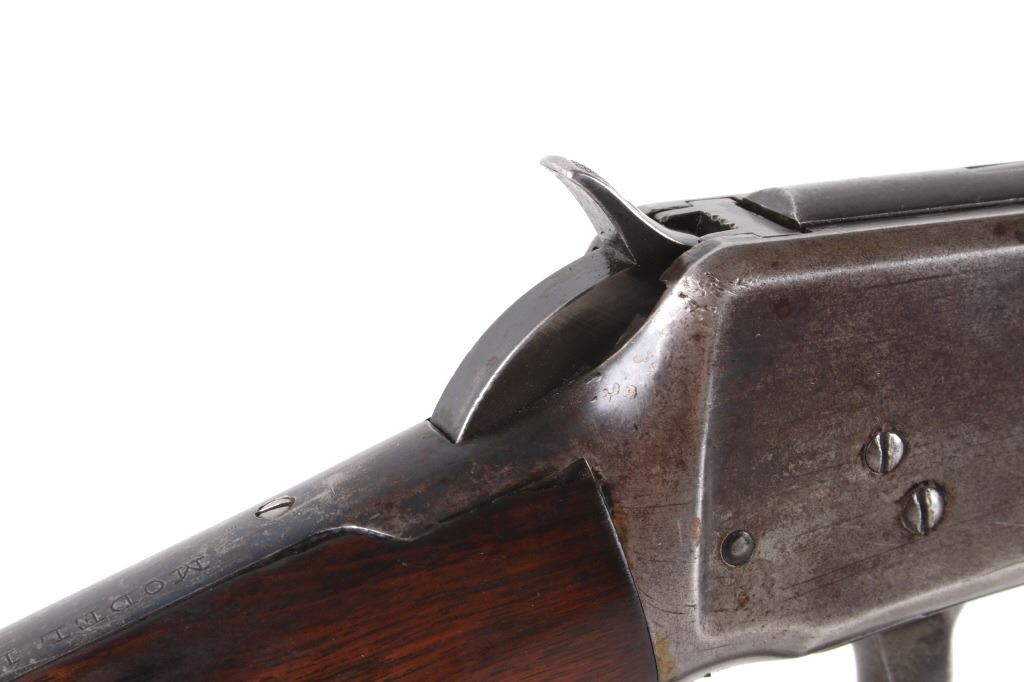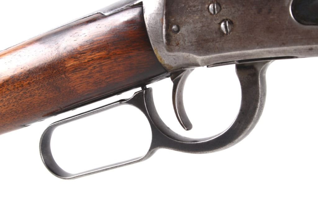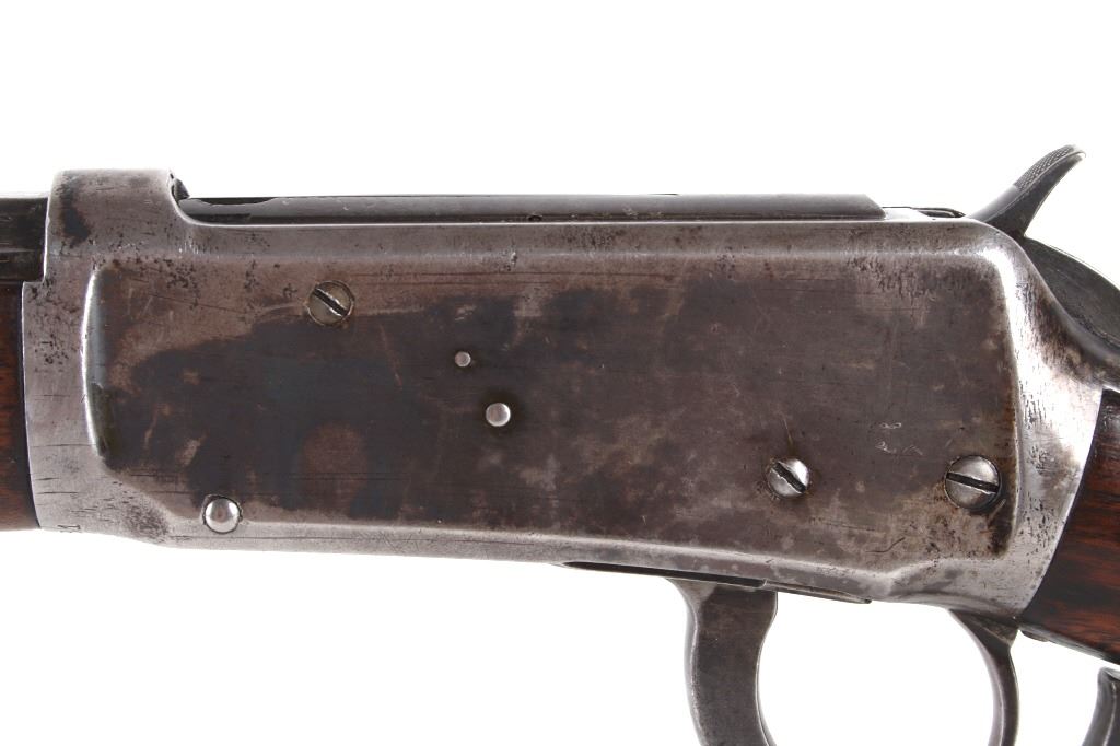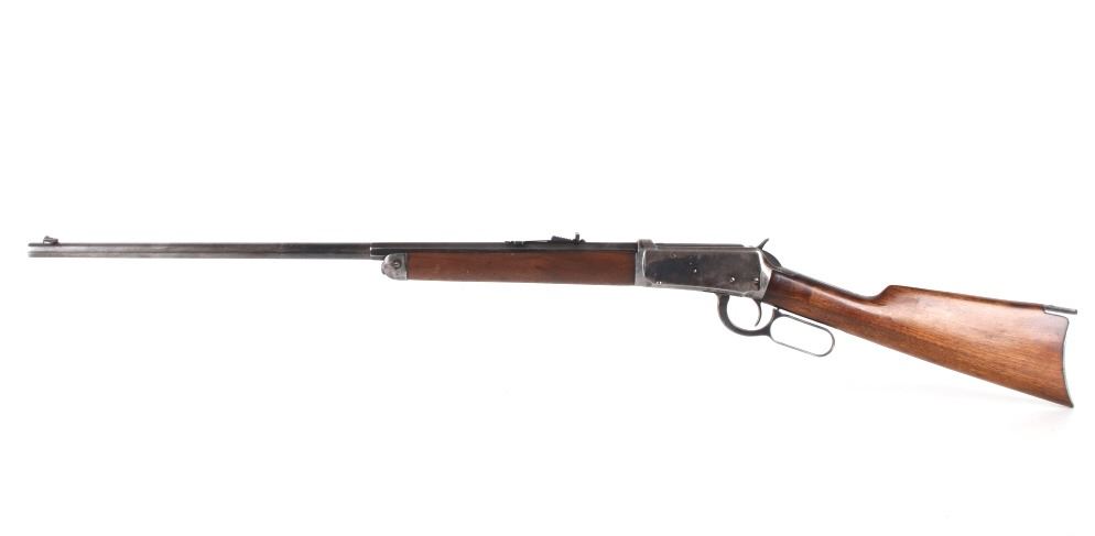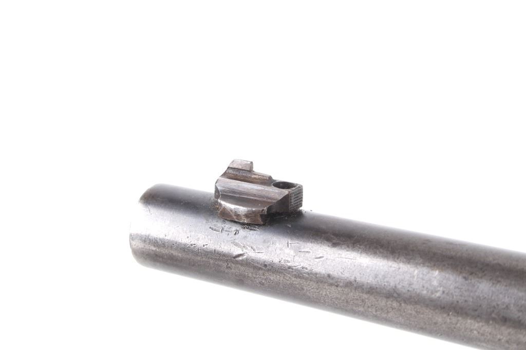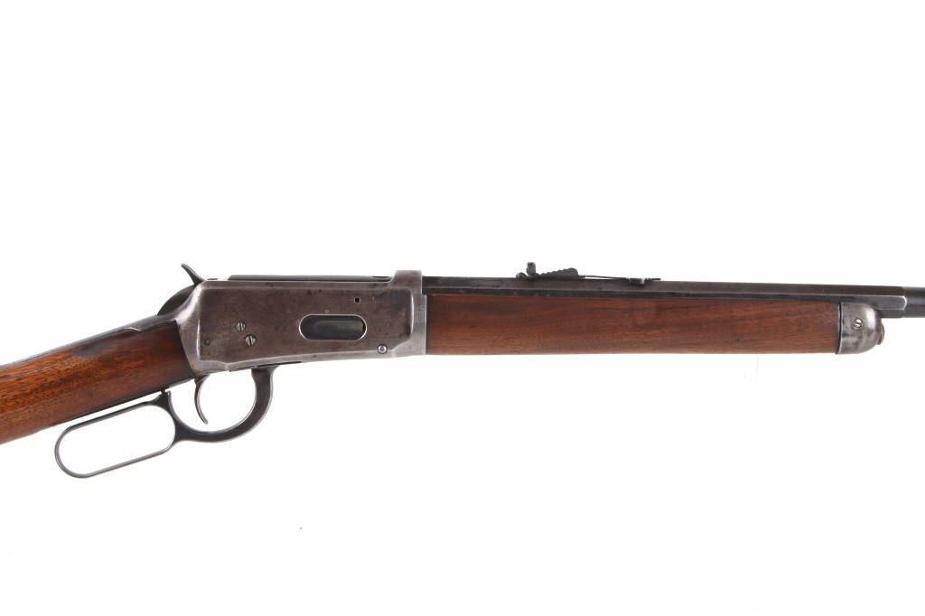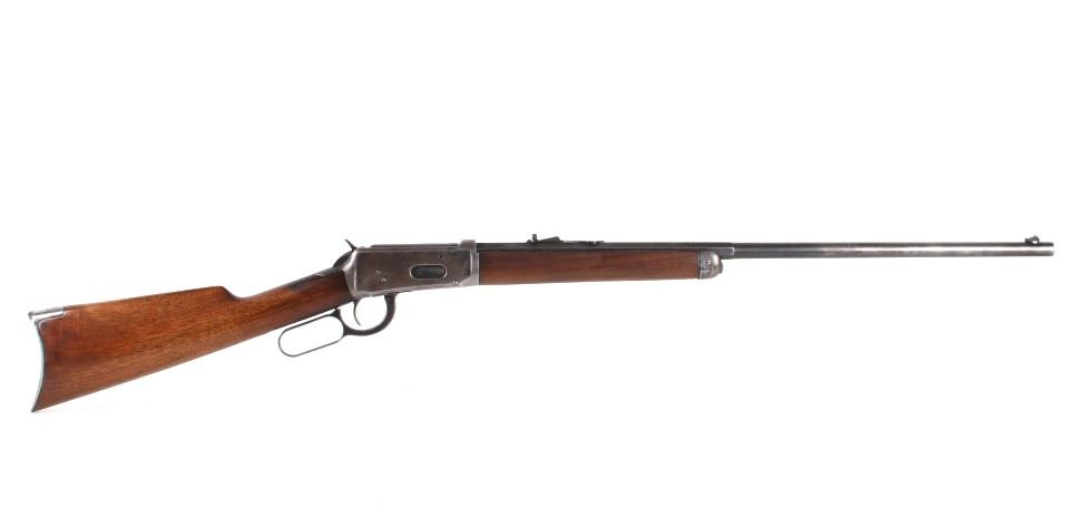 Desirable Special Order 1894 rifle with rare 26” half octagon barrel and half length magazine (often called a “button magazine”),in popular .30 WCF caliber (also known as the .30-30 Winchester Center Fire). This rifle with serial number 535781 left the Winchester factory the year the Titanic sank in 1912. It is important to note that the revolutionary .30WCF round, introduced for the Model 1894 Winchester in the year 1895, was the first sporting cartridge made expressly for smokeless powder and became instantly popular. According to the standard reference The Winchester Handbook by George Madis, only 3,633 rifles were made with half octagon barrels and only 2,671 rifles and carbines combined were made with special shorter magazines. This Pre-World War I production 1894 shows good lightly thinning blue on the 26” half octagon barrel. The receiver shows some aged blue with the balance gray/brown with good blue on the bolt. The butt stock and forend are in generally excellent condition showing only normal light handling. The barrel is fitted with a King marked flat top buckhorn rear sight with notched elevator intact as well as a matching King stamped small blade front sight. Additionally, this early 1894 has sharp and clear correct Winchester markings on the barrel and light 1894 markings on the upper tang. The 1894 was one of the most popular of Winchester’s models and thousands are still used regularly today. The 1894 was also known as the “Klondike Model” as many found their way to the Yukon Gold Rush of the last years of the 1890s and into the 20th century. It was equally popular east and west of the Mississippi and big game hunter/conservationist Theodore Roosevelt was known to have used a Winchester 1894 in .30 WCF caliber very similar to this 1912 manufactured rifle. Roosevelt ordeered a number of Winchester lever action rifles with half-octagon barrels and half-magazines like this one. This example boasts a tight action, strong and secure safety half-cock on the hammer and a bore with fine deep rifling all the way through. Considering its unusual and rare special order configuration, this is a truly scarce 1894. It would be a prize for any Winchester or old West collector. The rifle weighs 7lbs 4oz. Serial Number: 535781. This firearm qualifies as a Curio & Relic firearm, and requires FFL Transfer or NICS Background Check.