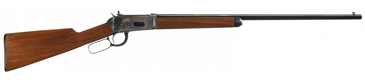 Manufactured in 1914. The left side of the barrel ahead of the rear sight is marked with the two address, "32-40" at the breech, and the Winchester oval proof is on top of the barrel and receiver at the breech. Standard three-line upper tang marking and the serial number is on the underside of the receiver. Blade front sight marked "PAT./NOV. 4,02", there is a filler block in the rear sight dovetail and there is an excellent Lyman receiver mounted peep sight. Blue finish, half magazine tube and mounted with a smooth walnut forearm with a steel end cap and straight grip shotgun buttstock with a hard rubber Winchester buttplate.