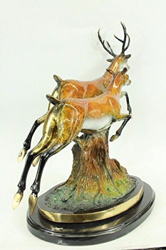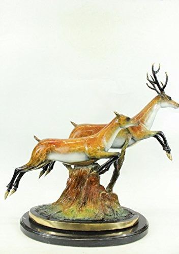 This Magnificent Bronze Figure Entitled Running Deer Is Produced By Renowned Artist Marius And Is A Limited Edition Widely Recognized As Thailand Greatest Living Sculptor. Running Deer Illustrates A Stag And Hind Fleeing And Has Been Wonderfully Captured By Marius. This Is A Hand Crafted Bronze Figure Which Has A Hard Enamel Interior Coated In Bronze. Bronze dimensions with marble base: Height 21 X Width 22 inches. Weight: 34 lbs.Please Note: This is a reproduction bronze sculpture from the original molded and signed. This featured bronze sculpture is a recast after the original, and has been done recently. This 100% bronze sculpture is an abstract piece certain to be a conversation piece.Please Note: This is a reproduction bronze sculpture from the original molded and signed. This featured bronze sculpture is a recast after the original, and has been done recently. This 100% bronze sculpture is an abstract piece certain to be a conversation piece.