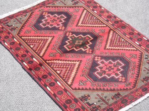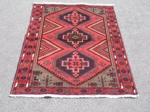 Special design hand woven authentic Persian Hamadan. Made of fine quality baby lamb's wool pile on cotton foundation, all natural vegetable dye. Hand woven in City of Hamadan from Iran. Looking at this piece, the contrast of colors and its geormteric design, captures your attention. The beauty of the color selection, the sophistication of its desgin considering its central medallion and the corner compostions, is what make this Rug a masterpiece. Size: 4 feet 8 inches X 3 feet 2 inches.