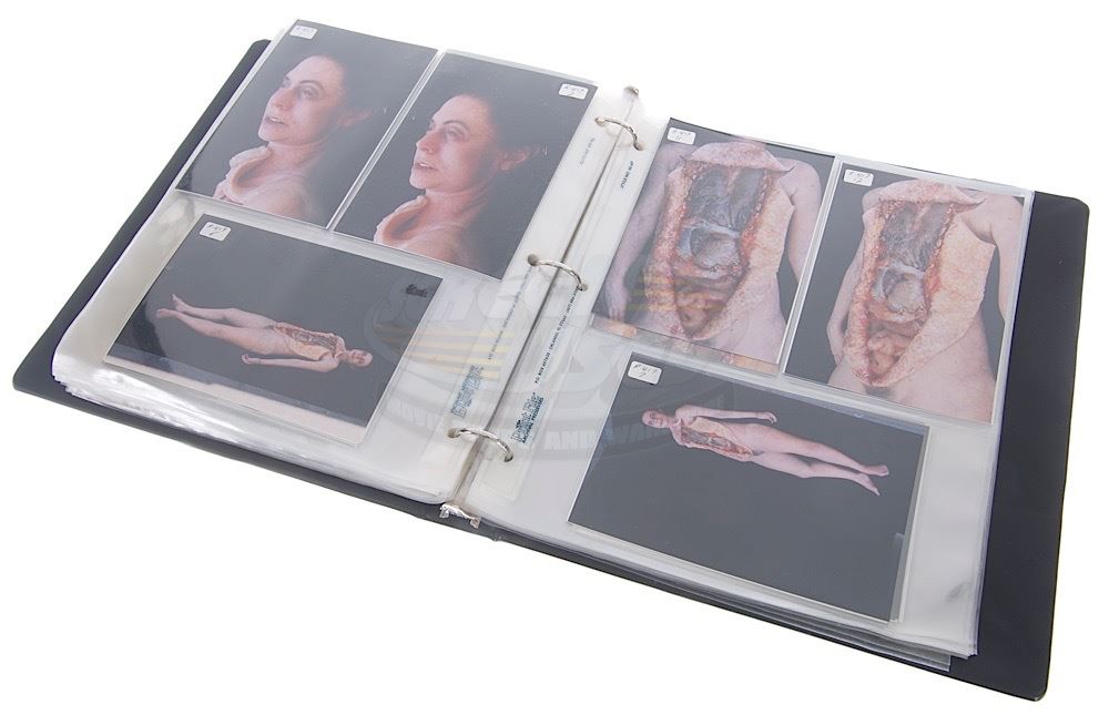 (Anchor Bay, 2005) This binder is filled with countless reference photos that were used during the production by Steve Johnson's XFX company. The binder offers a view into the creative process of the effects make-up, including reference photos of Myriam Cyr. This binder was acquired from the Steve Johnson XFX Archive, which is the prop house that created many of the make-up effects for the film.