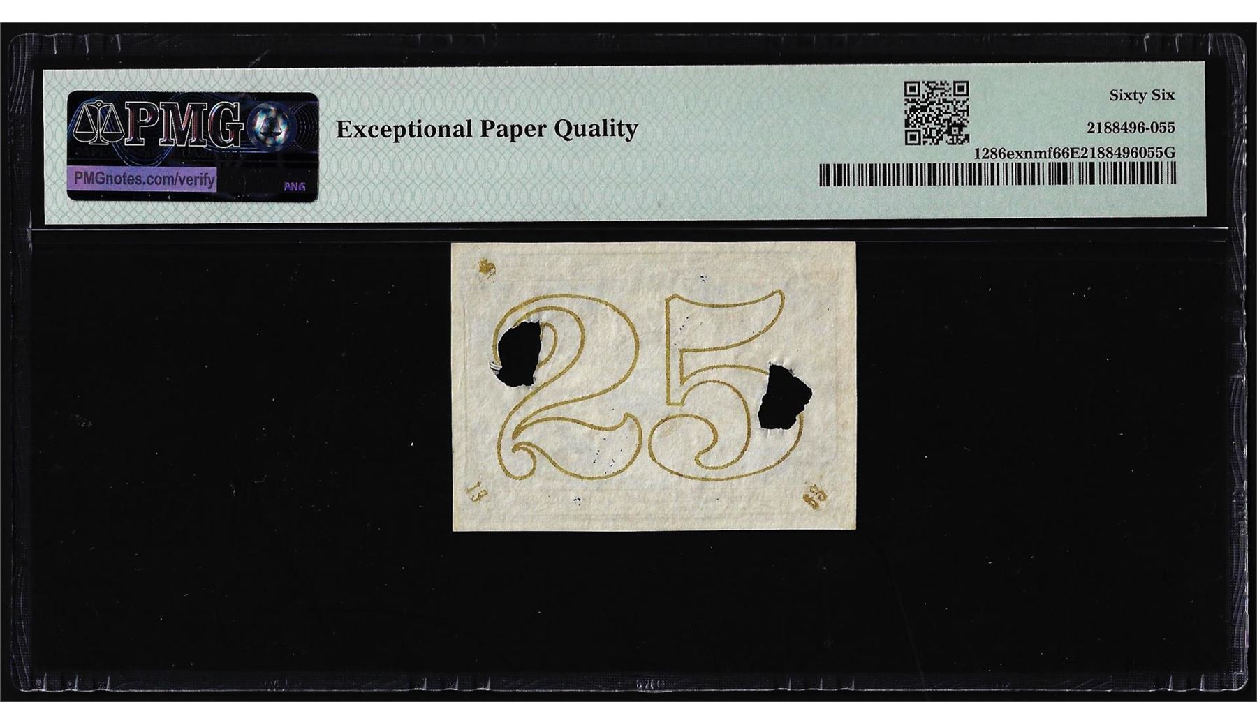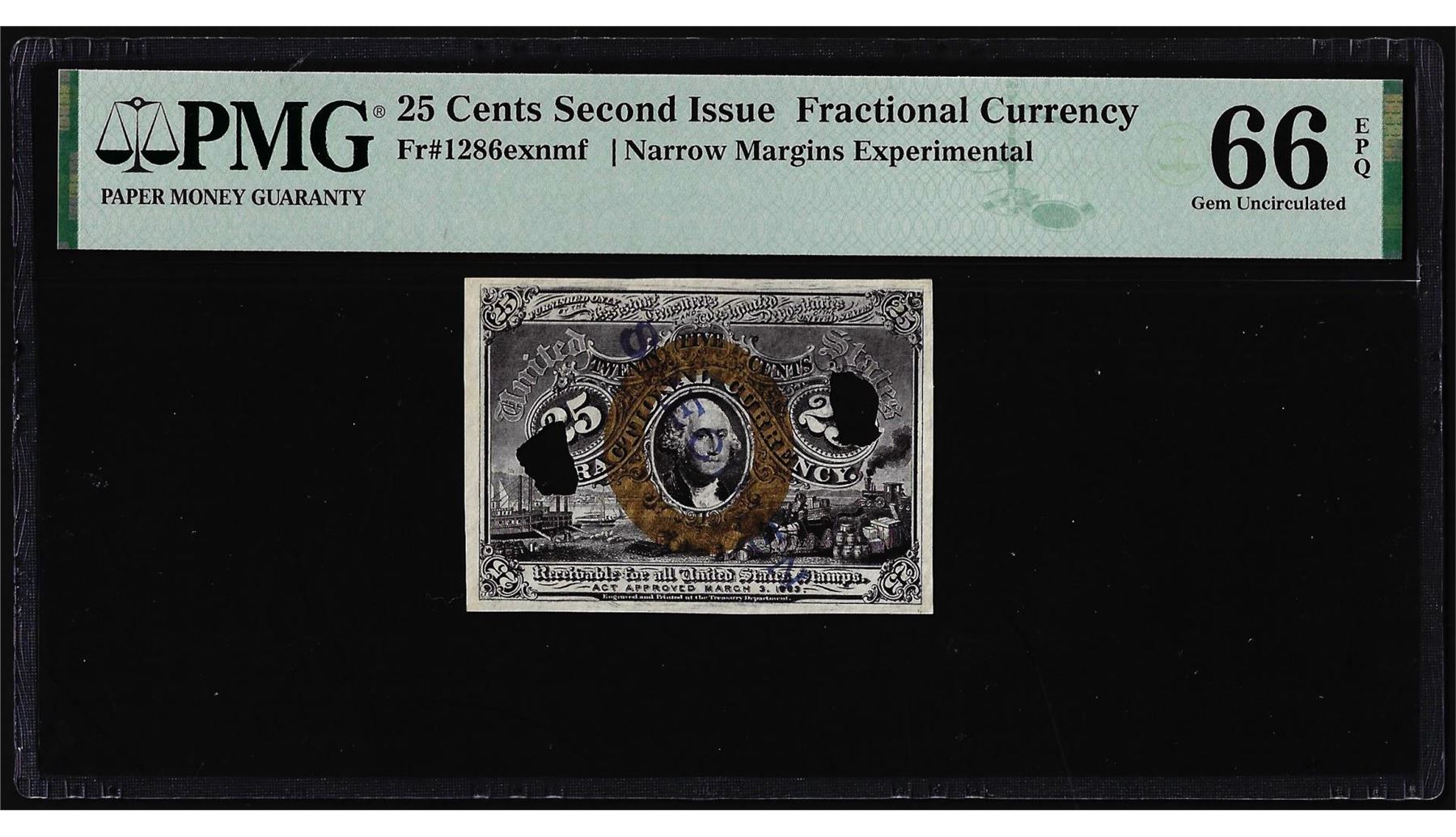 One Specimen 1863 2nd Issue 25 Cents Fractional Note Fr.1286ex PMG Gem Unc 66EPQ Top Pop. PMG Certified.