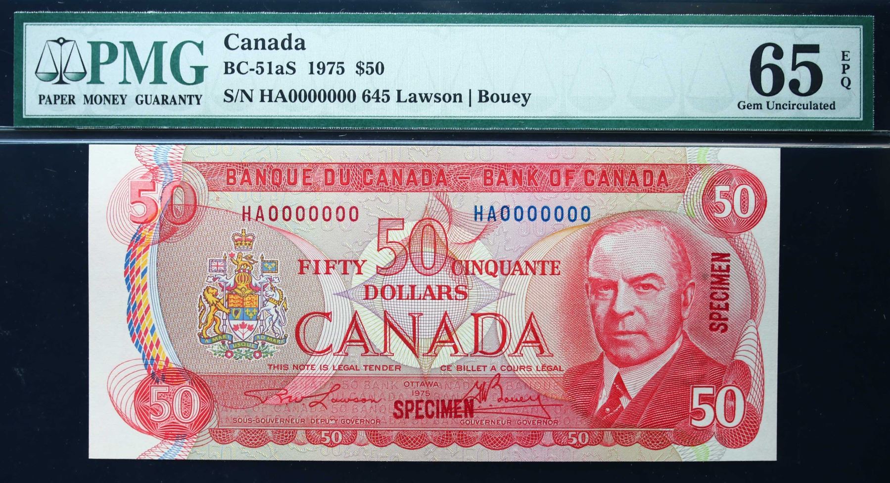 Specimen; 1975 $50 BC-51aS #AA0000000 PMG UNC65EPQ