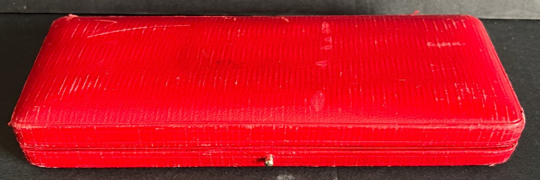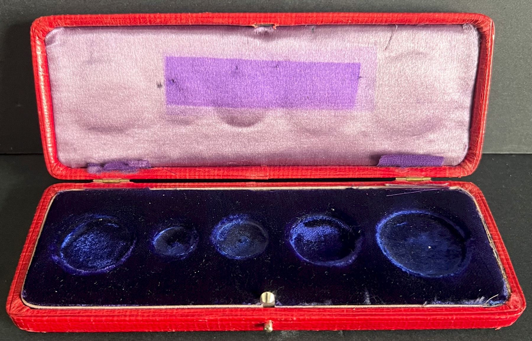 Specimen Box; 1908 Case 6b - 5 Coin Red Leather case. Note that interior colours do show fading.