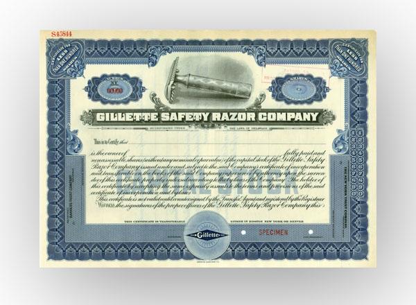 Specimen stock. Blue/Black. Top center vignette of an early razor. Extremely fine.