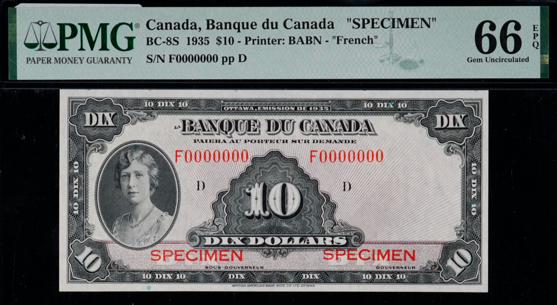 Specimen Note; 1935 $10 BC-8S #F0000000, PMG Superb Gem Uncirculated-66EPQ. Great eye appeal, great