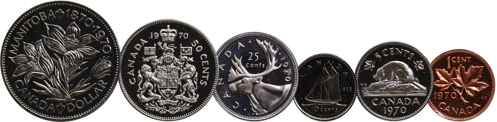 Specimen Set; 1970 Set of 6-coins in original black leather case.