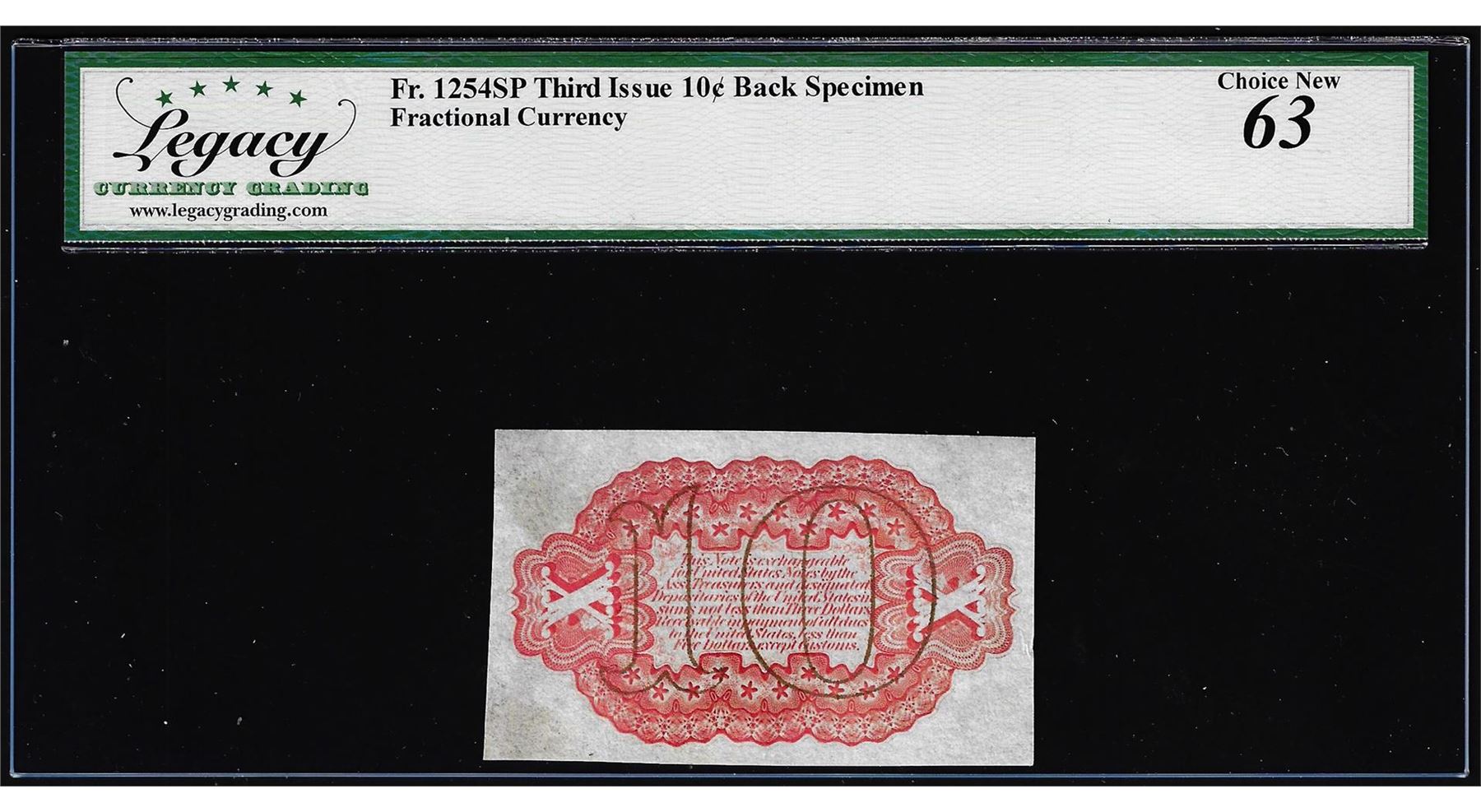 One Specimen Third Issue Ten Cents Fractional Note Fr.1254SP Legacy Choice New 63. Legacy Graded.