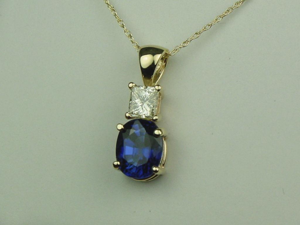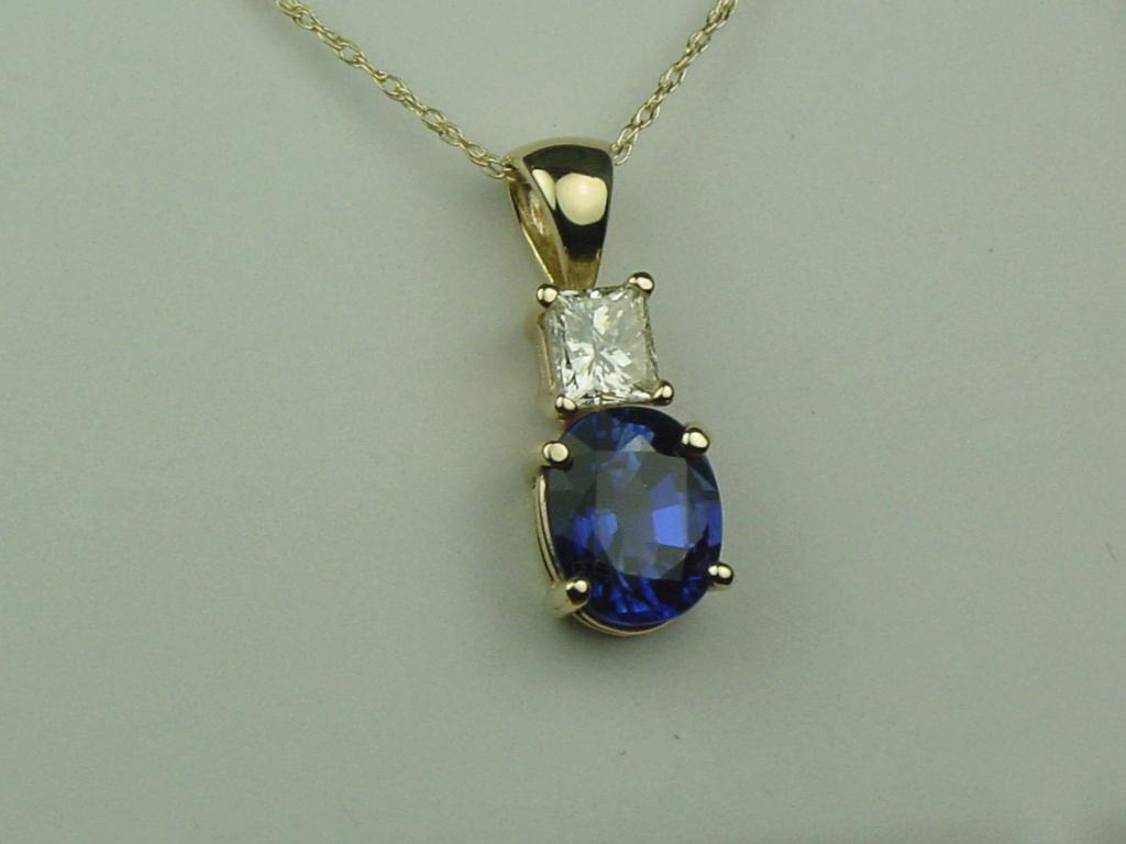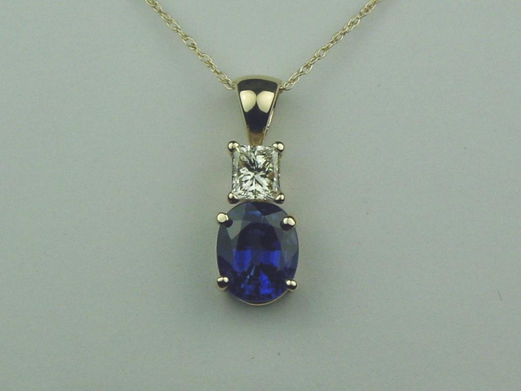 Spectacular 14K WG Ladies Handmade Pendant Set with a center fine oval cobalt sapphire weighing 2.47 carats and side princess cut diamond weighing approx. 0.50 carats of H-I color and SI clarity. Retail: $5,950.00Set with a center fine oval cobalt sapphire weighing 2.47 carats and side princess cut diamond weighing approx. 0.50 carats of H-I color and SI clarity. Retail: $5,950.00