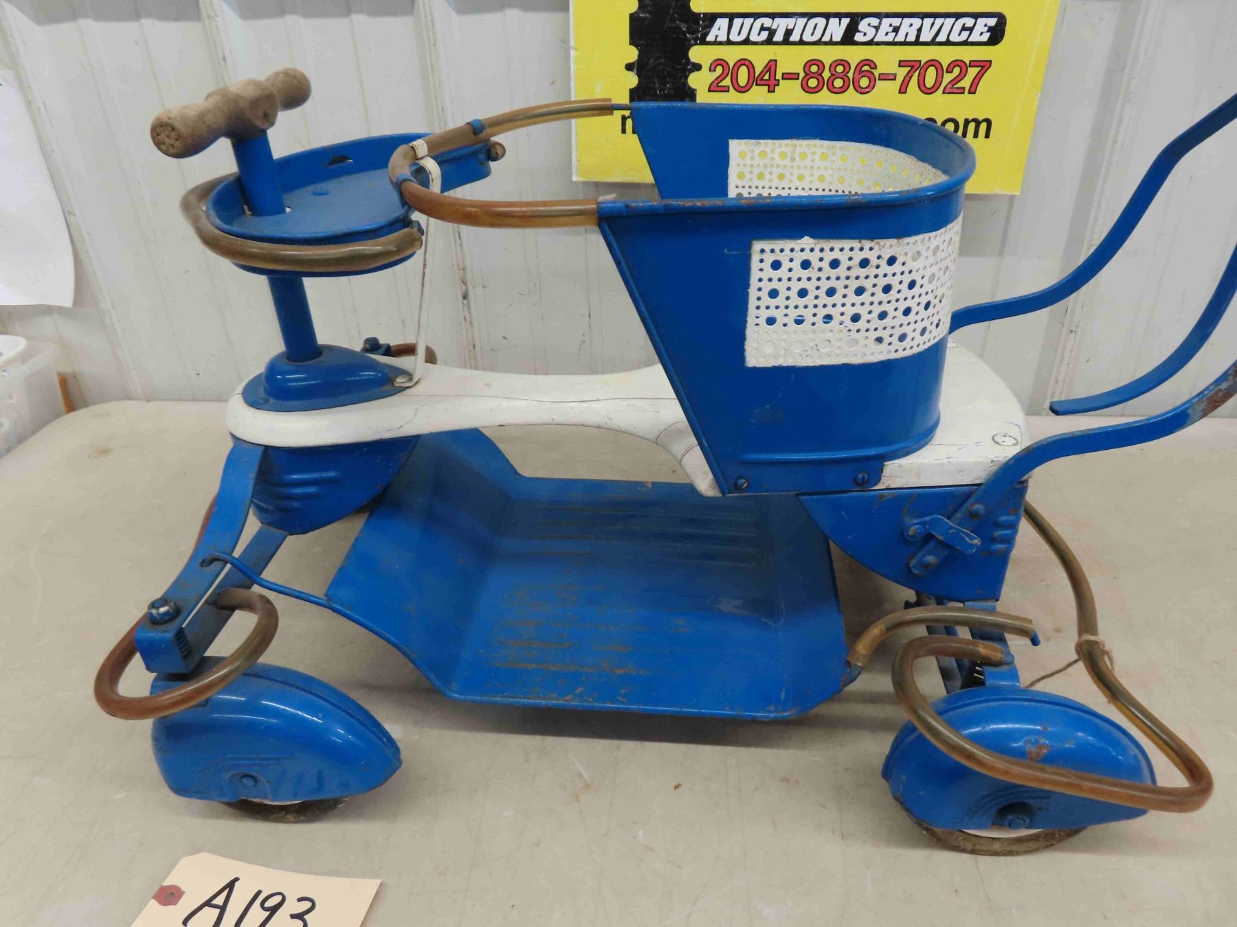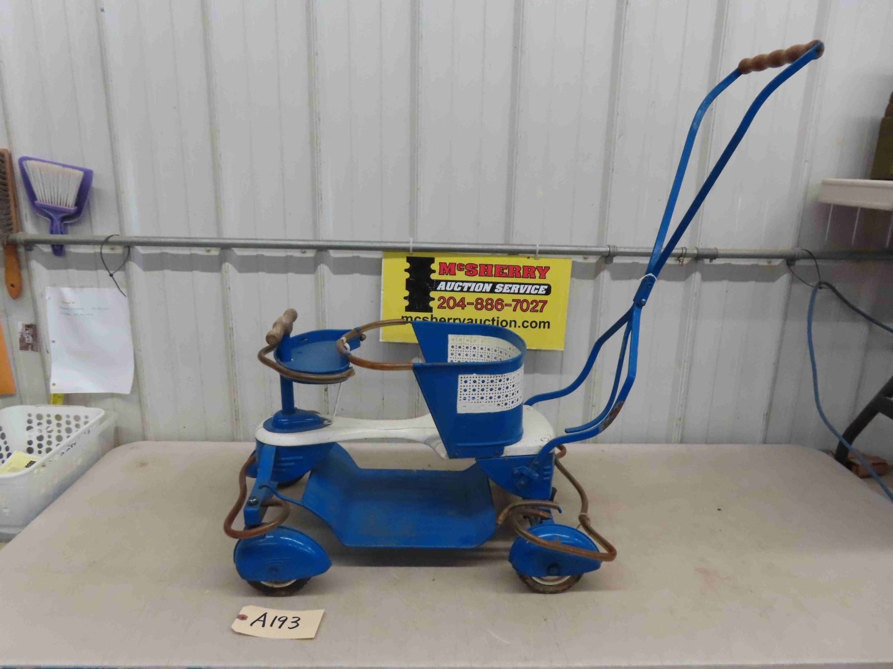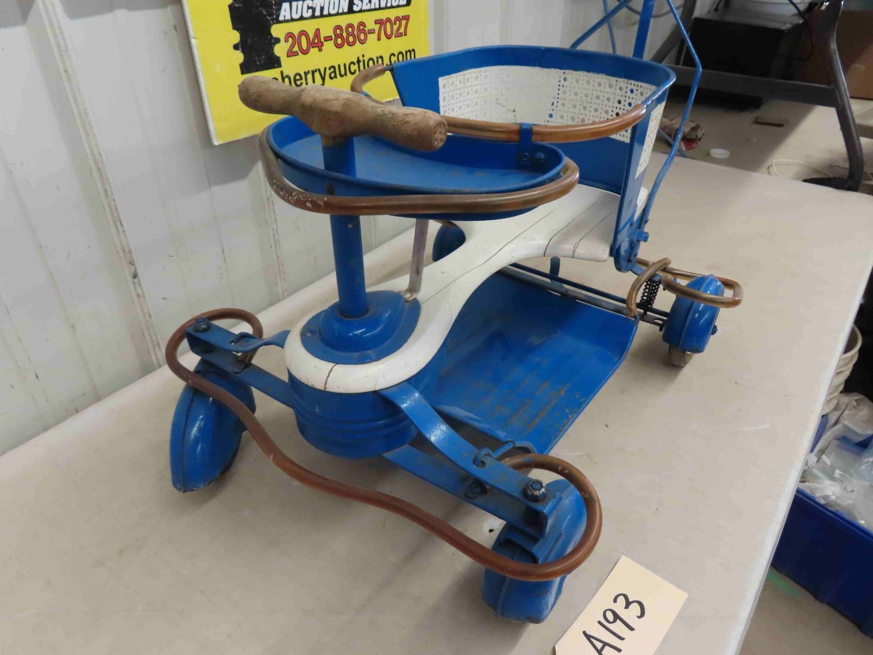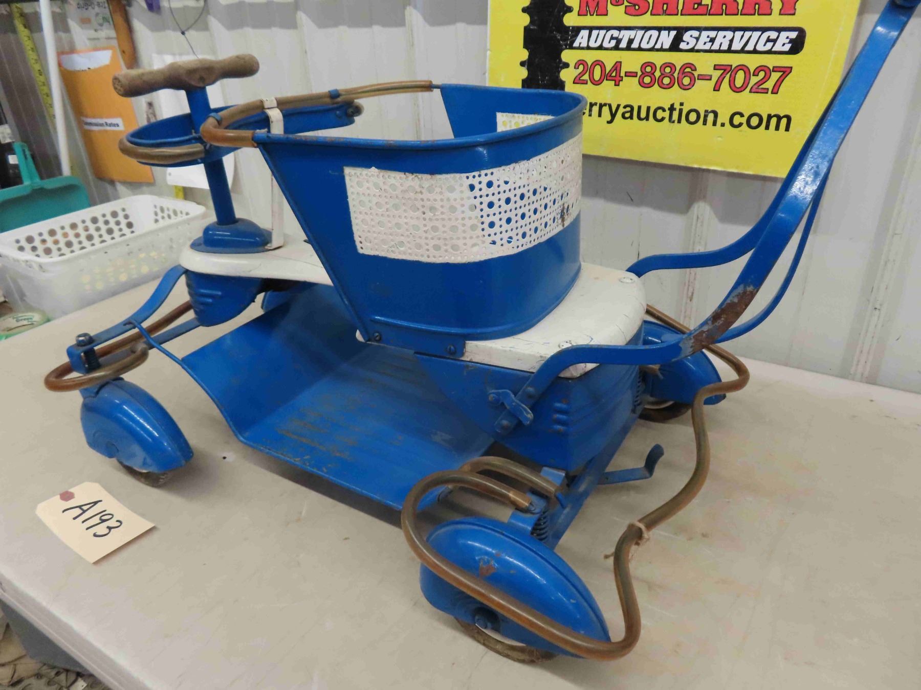 Spectacular 1940s-50s Streamlined Childs Stroller with Cool Fenders 28'' Long