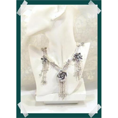 The center rose flower measures 41x38mm or approximately 1.58"x 1.5" for perspective to size. The FIVE strand necklace has a length of 17" and comes with my highest recommendations.