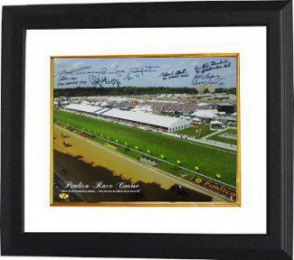 The Preakness Stakes is a thoroughbred horse race held on the third Saturday in May each year at Pimlico Race Course in Baltimore, Maryland. It is a Grade I race run over a distance of 9.5 furlongs on dirt. Colts and geldings carry 126 pounds; fillies 121 lb. It is the second leg of the US Triple Crown, following the Kentucky Derby and followed by the Belmont Stakes. The race has been termed "The Run for the Black-Eyed Susans" because a blanket of yellow flowers altered to resemble the Maryland State flower is placed around the winner's neck. Attendance at the Preakness Stakes ranks second in North America only trailing the Kentucky Derby. This 16x20 Photo is signed by 6 winners of the Preakness Stakes each with horse and year: 1977-Horse-Seattle Slew, Jockey-Jean Cruguet---1979-Horse-Spectacular Bid, Jockey-Ronnie Franklin---1981-Horse-Pleasant Colony, Jockey-Jorge Velasquez--- 1984-Horse-Gate Dancer, Jockey-Angel Cordero---1989-Horse-Sunday Silence, Jockey-Pat Valenzuela---2004-Horse-Smarty Jones, Jockey-Stewart Elliott---MAB Hologram and Certificate of Authenticity from Athlon Sports. Custom White Mat and Premium Black Frame as shown.