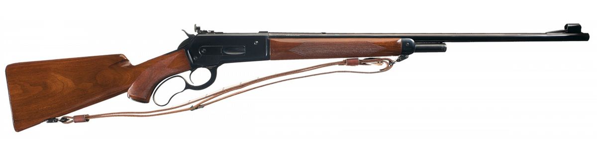 Manufactured in 1938 with a hooded ramp front sight with stippled base, the rear dovetail slot has a filler block and there is a bolt mounted fully adjustable rear peep sight with a small apeture. Has the long top tang and the standard markings. Mounted on a diamond pattern checkered semi-beavertail walnut forearm and pistol grip stock with hard rubber grip cap, sling studs, sling swivels and a checkered steel buttplate. With a brown leather claw sling.