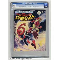 <B>Spectacular Spider-Man #2 (Marvel, 1968) CGC NM+ 9.6 White pages.</B></I> Here's one more copy of the short lived magazine-sized, full color Spider-Man book. The art is by John Romita Sr. and Jim Mooney; the Green Goblin runs amok inside, as well as on the cool cover. This is the second-highest grade this book has received from the CGC to date. Overstreet 2004 NM- 9.2 value = $165. CGC census 1/05: 49 in 9.6, 29 higher.