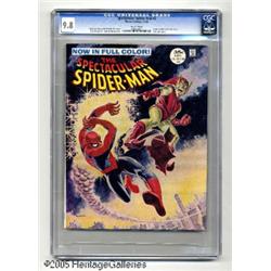<B>Spectacular Spider-Man #2 (Marvel, 1968) CGC NM+ 9.8 White pages.</B></I> Here's a copy of the short lived magazine-sized, full color (for this issue, anyway) Spider-Man book. Art is by John Romita Sr. and Jim Mooney; the Green Goblin is featured in a long story, as well as on the cool cover. This is the highest graded copy the CGC has certified to date. Overstreet 2004 NM- 9.2 value = $165. CGC census 1/05: 29 in 9.8, none higher.