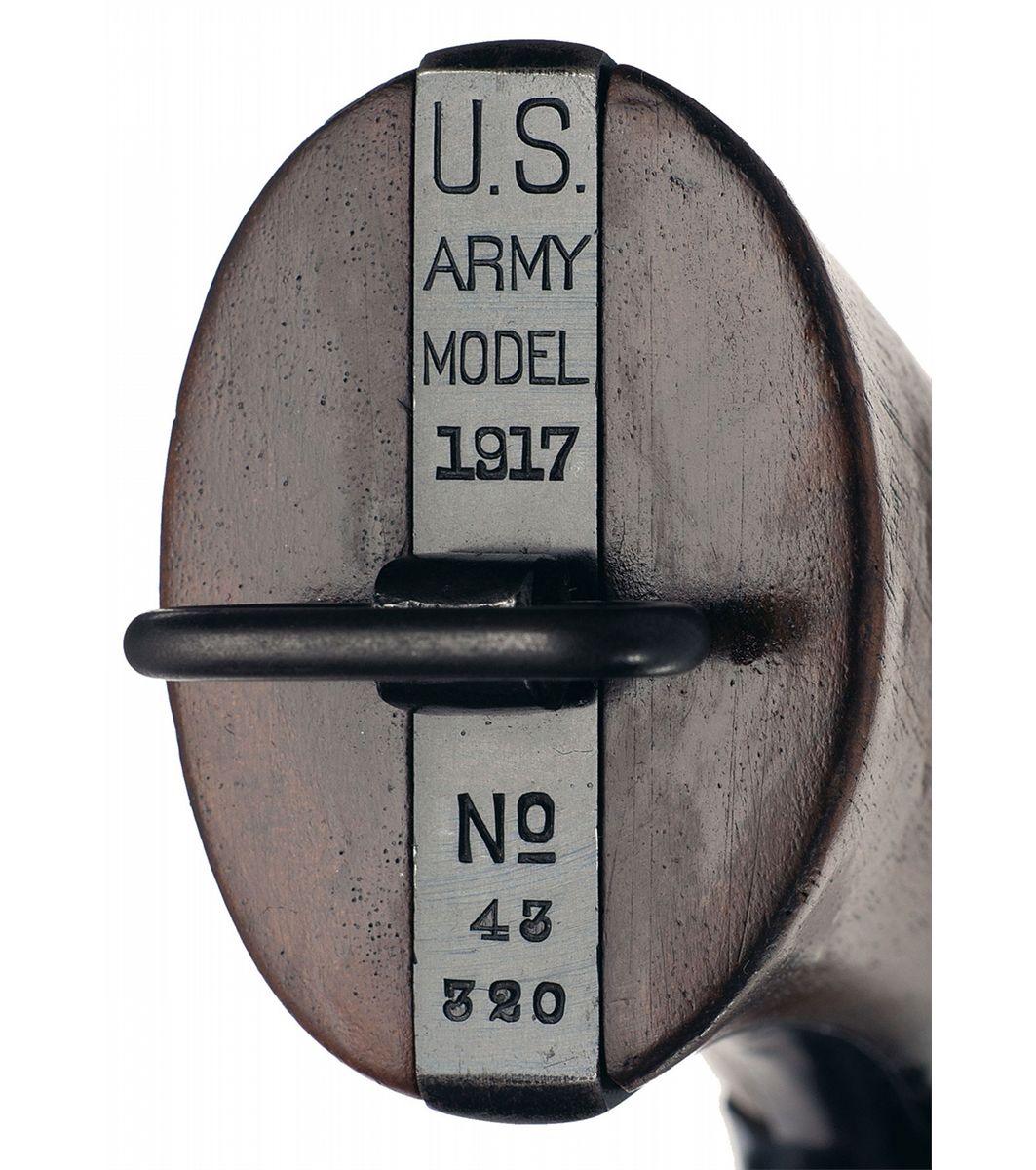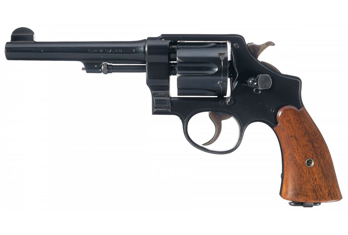 Standard Smith & Wesson barrel markings with "UNITED STATES PROPERTY" on the underside. Cylinder is numbered to the gun and the inside of the frame and crane have matching assembly numbers. Left side of the frame has a "GHS" inspector marking and butt has the U.S. Army model marking and serial number.