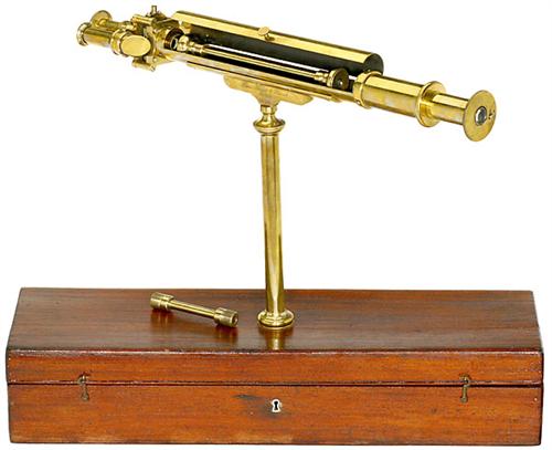 Spectroscope by "Schmidt & Haensch", c. 1900 Marked: "Franz Schmidt & Haensch, Berlin", serial number 2260, polished brass, detachable, with mahogany box, length of the telescope: 25 in.<Br>