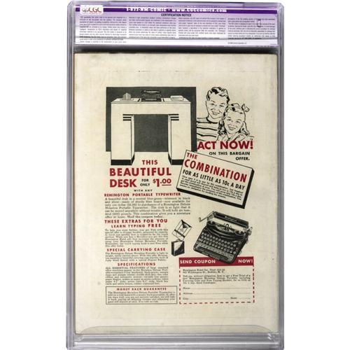 Shock Gibson, "the Human Dynamo," made his first appearance in this issue. The book, a Gerber "7," has art by Bob Powell, as well as what Overstreet speculates might be the first full-page panel in comics. A word on the publisher: various histories of comics disagree on whether Brookwood was another name for Harvey, connected to Harvey, or whether rights to this series were simply bought by Harvey at a later time. What's certain is that the series was published under the Harvey name starting with issue #14, and Shock Gibson was the first significant Harvey superhero, making this issue a must-buy for any collector of that long-running publisher. CGC notes, "Restoration includes: color touch, pieces added, tear seals, cover cleaned, reinforced." Overstreet 2006 GD 2.0 value = $332; VG 4.0 value = $664; FN 6.0 value = $996. <BR><BR><b>Shipping:</b> Slabbed Comic (<a target="_blank" href="http://www.heritageauctions.com/common/shipping.php">view shipping information</a>)