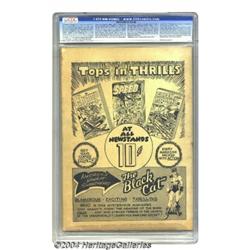 Speed Comics #17 (Harvey, 1942) CGC GD/VG 3.0 Off-white pages. The sexy Black Cat begins in this issue, with her origin reprinted from Pocket Comics #1. The Kirbyesque cover art is signed "Jon Henri" but CGC credits Joe Simon while Overstreet indicates Joe Simon and Jack Kirby were responsible; does anyone know for sure? Gerber rates this comic a "7," calling it "scarce." There is currently only one copy of this issue that has been graded higher by CGC. Overstreet 2003 GD 2.0 value = $73; VG 4.0 value = $146. Important notice: Heritage usually auctions material at the rate of 200-250 lots per hour. On some occasions eBay Live bid software or the Internet may not be able to keep up with the pace of the auction. We recommend placing a realistic absentee bid now as insurance to avoid disappointment. Occasionally the auctioneer may eliminate or reject an eBay Live bid, and the auctioneer may also reopen a lot after the close of the eBay live bidding (usually because we missed an audience bid), and may reject your bid even if it shows you as the winning bidder. By bidding via eBay Live, you agree that Heritage may award the lot to another bidder at its sole discretion under the circumstances described above or any other reasonable circumstances. Since eBay bids are not shown to us until we open the lot on the floor, we treat those bids just like floor bids. In most cases the floor responds before the eBay bid is presented to us, due to Internet lag time, so for consistency we have made it a policy that floor bids are always considered first over tie eBay live bids. Also please note that all Heritage lots purchased through eBay Live carry a 20% Buyer's Premium. Please make sure you read the Terms and Conditions before you bid.