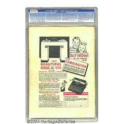 Speed Comics #5 (Harvey, 1940) CGC VG+ 4.5 Off-white to white pages. Shock Gibson takes on some big lizards for this cool dinosaur cover. This issue has art by the talented Bob Powell. It is very colorful and looks solid, with no major defects, just an accumulation of wear typical for the grade. To date, this is the only CGC-graded copy of this issue. Overstreet 2003 VG 4.0 value = $106. Important notice: Heritage usually auctions material at the rate of 200-250 lots per hour. On some occasions eBay Live bid software or the Internet may not be able to keep up with the pace of the auction. We recommend placing a realistic absentee bid now as insurance to avoid disappointment. Occasionally the auctioneer may eliminate or reject an eBay Live bid, and the auctioneer may also reopen a lot after the close of the eBay live bidding (usually because we missed an audience bid), and may reject your bid even if it shows you as the winning bidder. By bidding via eBay Live, you agree that Heritage may award the lot to another bidder at its sole discretion under the circumstances described above or any other reasonable circumstances. Since eBay bids are not shown to us until we open the lot on the floor, we treat those bids just like floor bids. In most cases the floor responds before the eBay bid is presented to us, due to Internet lag time, so for consistency we have made it a policy that floor bids are always considered first over tie eBay live bids. Also please note that all Heritage lots purchased through eBay Live carry a 20% Buyer's Premium. Please make sure you read the Terms and Conditions before you bid.
