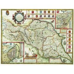 THE NORTH AND EAST RIDINS OF YORKSHIRE.... SUDBURY & HUMBELL, 1610 [1612], published in "The Theatre of the Empire of Great Britain...", hand-coloured, c/f split with repairs verso, some browning or bleeding of colours, still very good. A decorative map of Yorkshire with inset maps of Richmond and Hull with coats of arms. Framed.