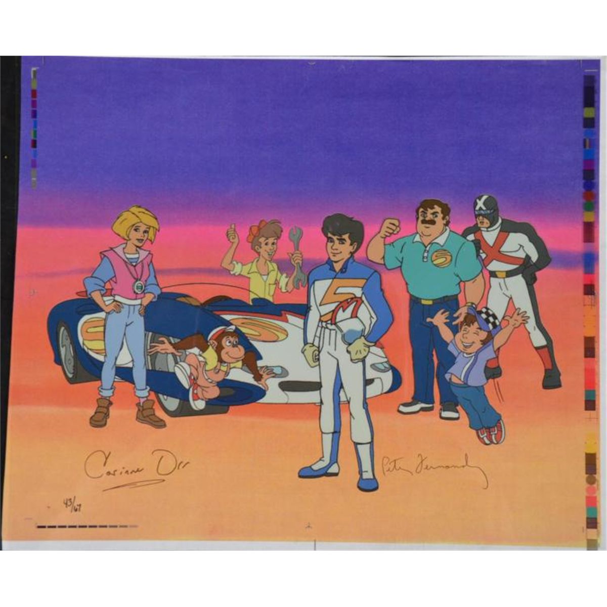 Here's Speed Racer and the gang, in a great limited edition animation cel. It is signed by two of the voice actors from this * Title: Bambi's Winter TrailMedium: Lithograph on paperImage size: 10 3/4 x 14 inchesPresentation: Double matted in white and goldMatte size: 11 x 14 inchesCondition: Excellent