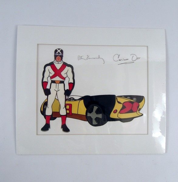 "Speed Racer" (1967) was an extremely popular animated series which still airs throughout the world today. This is an original animation cel from the series, showing Speed Racer with his High-Tech race-car. It is autographed by the voice of Speed Racer Peter Fernandez, and also of Corinne Orr who played Mom Racer. (Approx. 15 1/2" x 13").