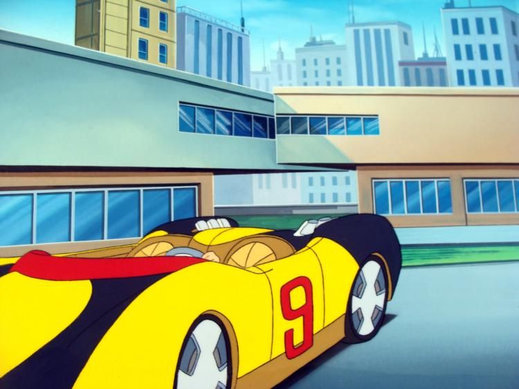 Speed Racer is a show featuring a young racer named Speed and his ultimate driving machine, the Mach 5. Speed Racer combines racing with international intrigue. Speed is an eighteen year old car driver, and is one of the youngest in the international * racing cicuit. Speed also has martial art talents and tried to do the right thing whenever possible. Trixie is Speed's girlfriend, she is a seventeen year old pilot of airplanes and helicopters and often rides along as Speed's assistant and navigator. Racer * X (Rex Racer) is Speed's older brother, who left home years before after a dispute with Pops over a crashed car. He eventually became one of the world's best drivers and a secret agent for the International Secret Service. Spritle is Speed's little brother * and turned eight years of age in the episode "The Royal Racer." Spritle and Chim Chim usually always follow along Trixie and Speed in the trunk of their Mach 5 car. Chim Chim is the family's pet chimpanzee, and Spritle's best friend. Chim Chim makes it his * duty that Trixie and Speed get home safely. * * * * Start revving up those engines boys and girls, the race is about to begin... * * * Original Production Background and Animated Cel * Overall Size of Background: 10" x 13 1/2" Overall Size of the Cel: 9" x 10 1/2" Very Good Condition; been stored * * * This is an original hand-painted cel set-up used in the production of an episode of "Speed Racer." Each one-of-a-kind set-up represents a slight change in position of the characters. When individually photographed and projected in rapid succession, the images * appear to move. * * To create production cels, the original animator's drawing is transferred onto an acetate cel (by hand-inking and/or photo copying). The cel is then hand-painted on the reverse side. The background accompanying this set-up is a hand-painted original production * background. * * The background and cel are ready to be matted and framed. It is a colored background with a cel and has the animator's notations at the top of both. *