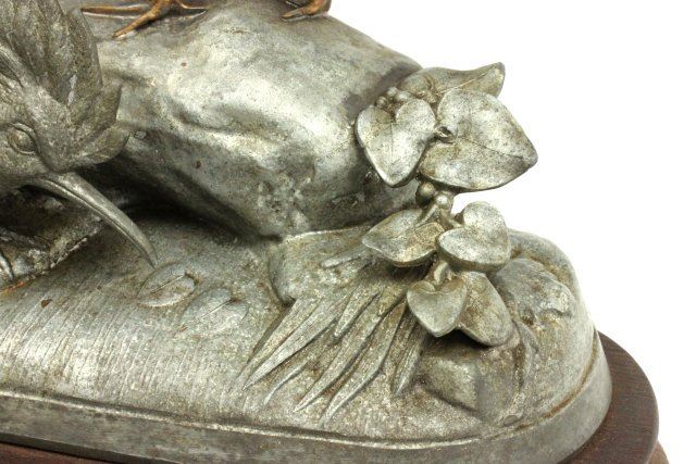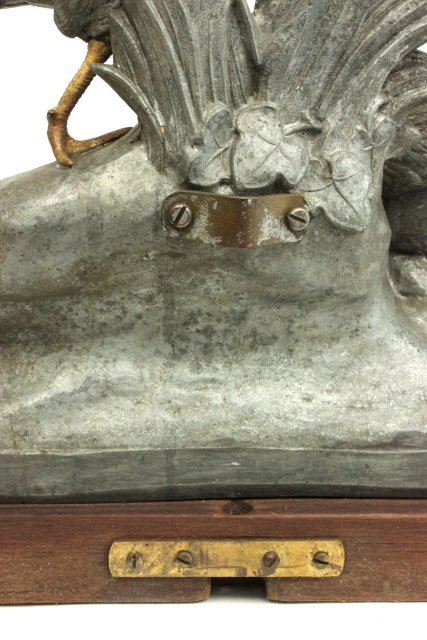 Late 19th or early 20th century. Originally mounted as lamp on wood base. Approx. 15" H with base. Finish worn.