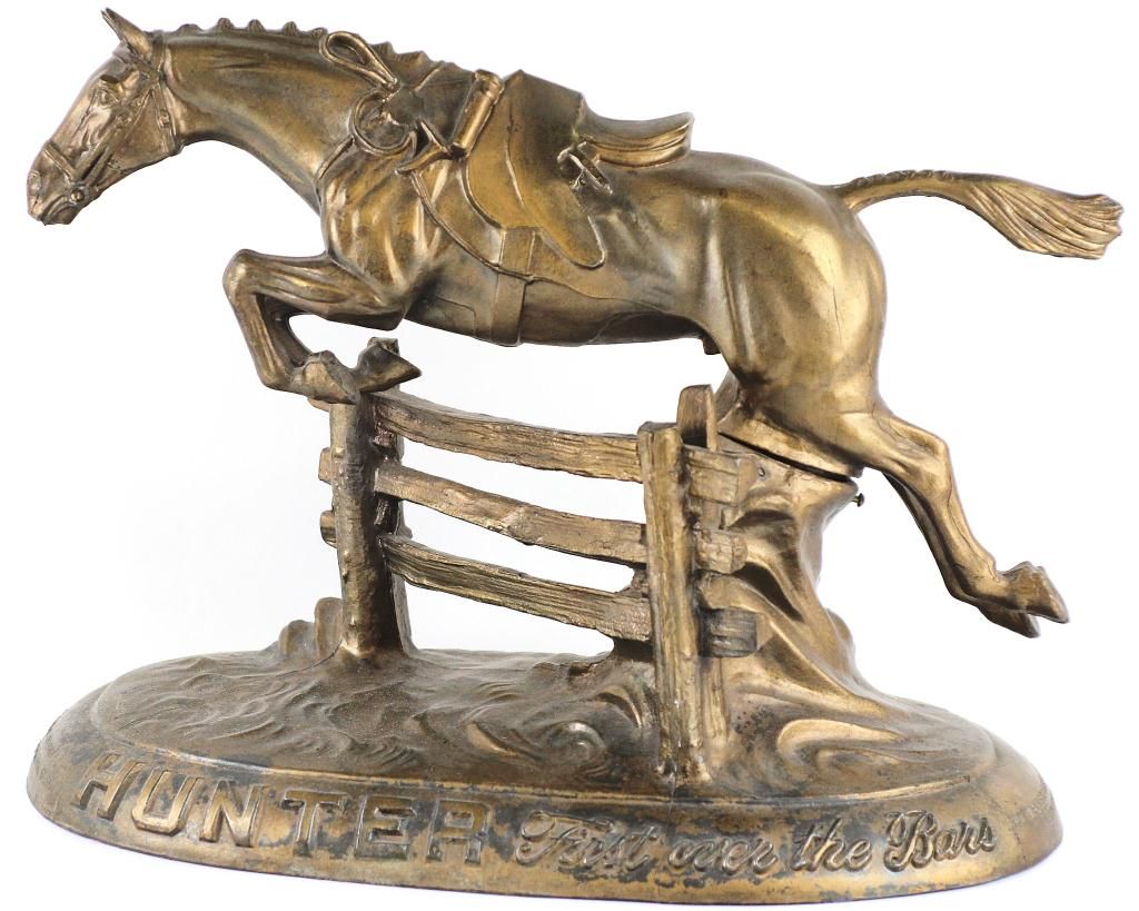 Spelter cast Advertising statue for Hunter Whiskey, 11" tall X 14" long, Est. 75-150