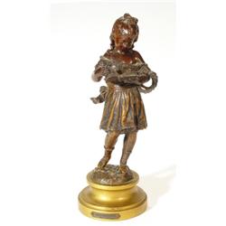 Spelter figure of a young girl reading a book on a giltwood base, 33cm high
