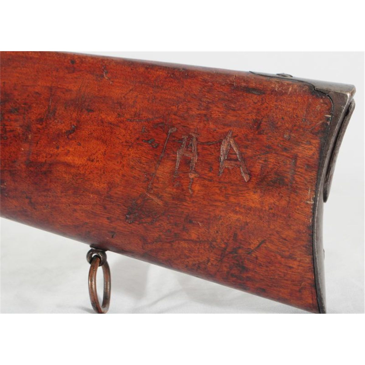 .50-56 Ca. With Rare Double-set Triggers. Initials "H A" carved into shoulder stock. Serial #521.