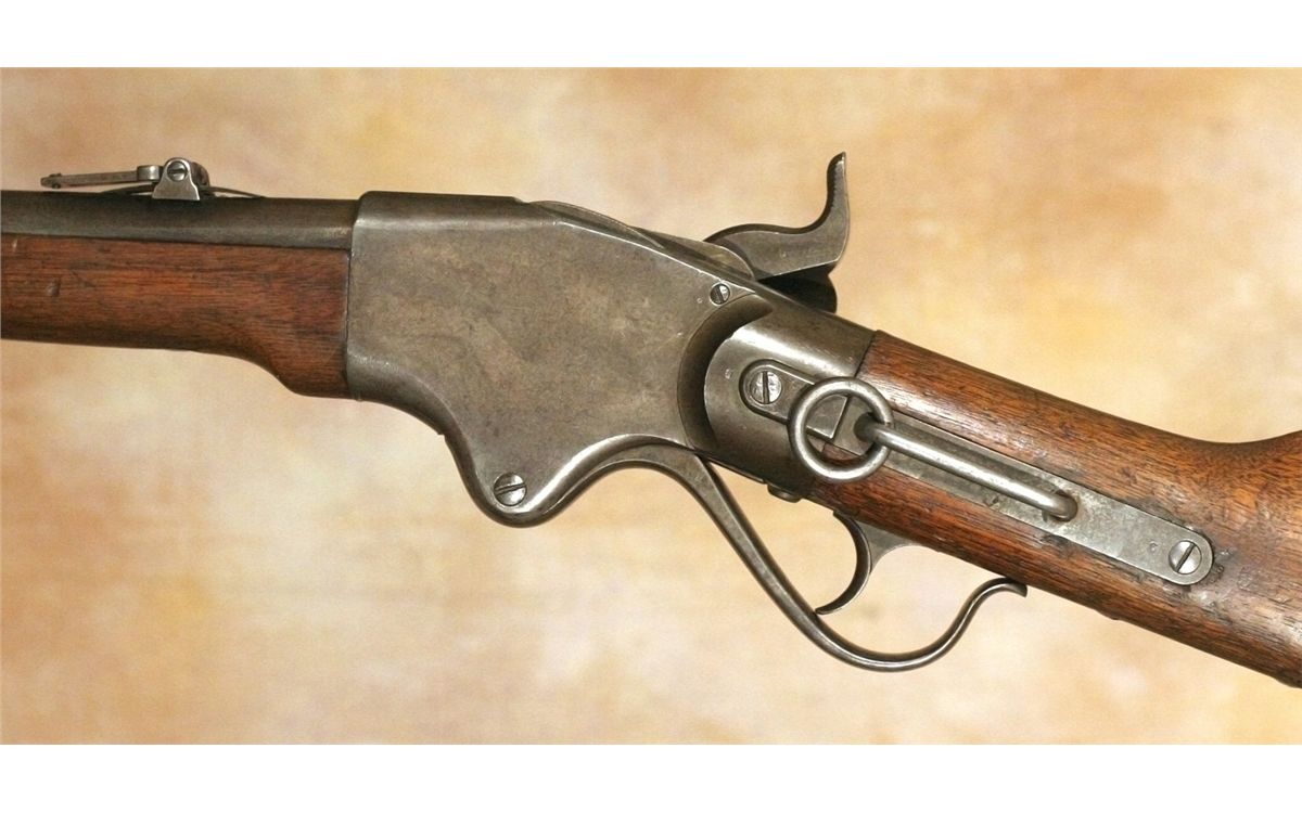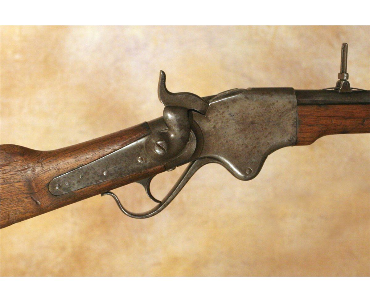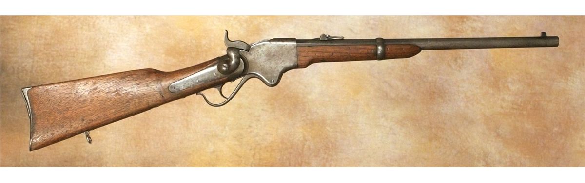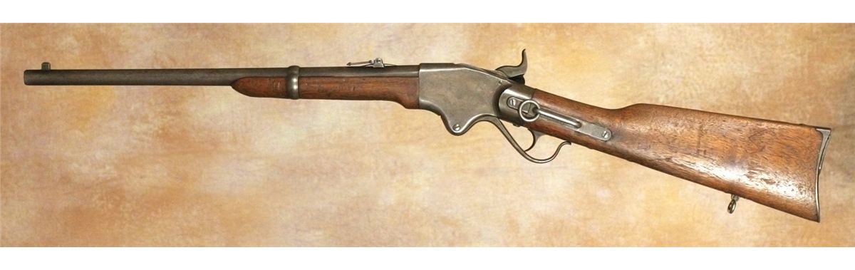 Spencer Civil War Carbine. 22" barrel. .56-50 calibre, fine bore. Serial #15030. 1865 model. Traces of military cartouches. Walnut stock.