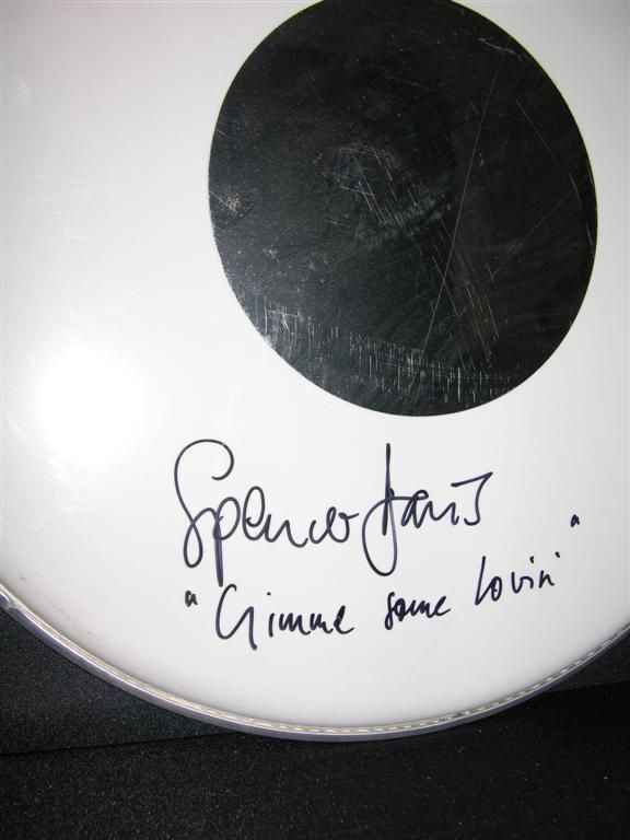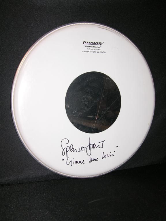Ludwig drum head signed by Spencer Davis of the 1960s rock band The Spencer Davis Group. Davis had added the title of his hit song Gimme Some Lovin. (15.5" diameter)