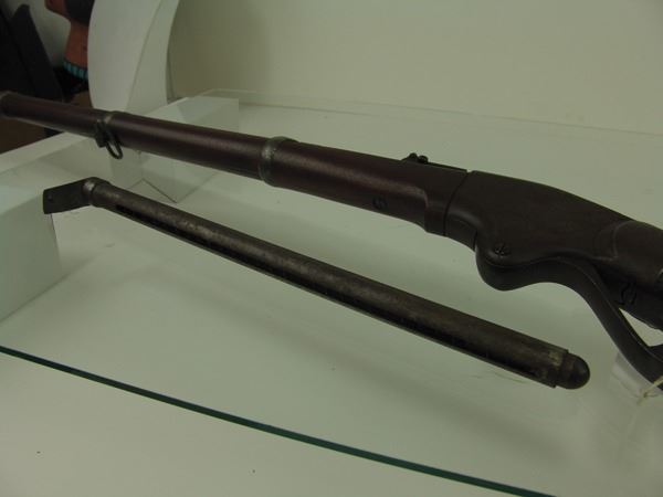 Ca. 1860s 48" Rare, early, .50+ cal. lever action single shot rifle model 1860 Army, with 28-1/2" barrel, and orginal (?) ramrod. Good condition. No S/N.