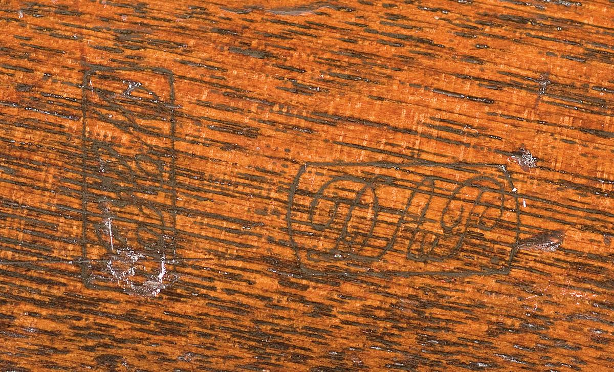 Fine. The barrel has approximately 40% blue with the balance a dark patina with a few small areas of minor spotting and some minor pitting on the muzzle. The hammer and lock have a dark patina with some pin prick type pitting. The frame shows approximately 40% of the faded original case colors with much of the pattern remaining. The breechblock retains most of the bright fire blue finish. The wood is fine with exception of a long shallow gouge on the right side buttstock, there are several splinters (moderate at the top) missing around the lock and overall minor dents and scratches. One cartouche is faint, the other clear. The markings are clear. The action is fine. The extra breechblock assembly is excellent with almost all of the original bright niter blue and case colors remaining. Mechanically fine, except for the loose Stabler cutoff.