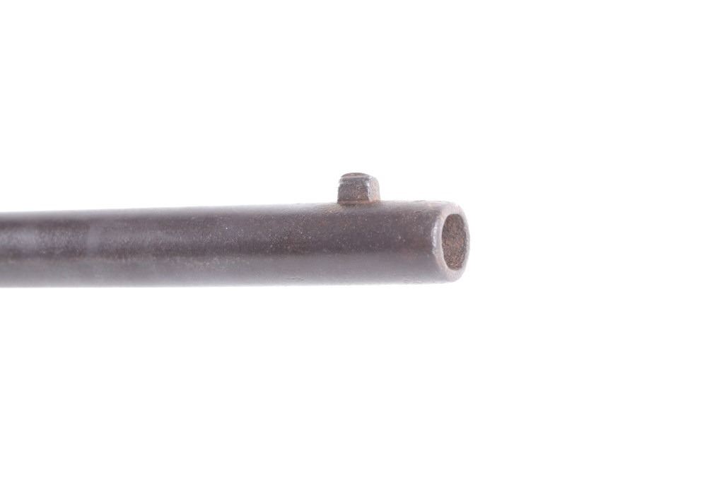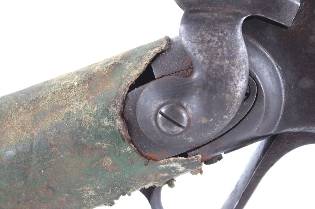 Spencer New Model 1867 .50 caliber carbine showing extensive frontier Plains Native American Indian use during the Indian Wars era. The New Model 1867 was the last carbine Spencer made. It was only manufactured in 1868 with a limited production of only 2500. All were serial numbered in the 101000 to 108000 range with this example numbered 106490. Additionally, this model has the correct N.M. stamping on the barrel top at the breech along with worn but legible Spencer markings on the receiver top. This was the last Spencer repeating rifle made for the U.S. Government for the Indian Wars. Surviving examples of this model are few as it had such a limited production and most saw hard service with the Western cavalry. This fascinating example is in uncleaned condition. All exposed metal on the barrel and receiver show a